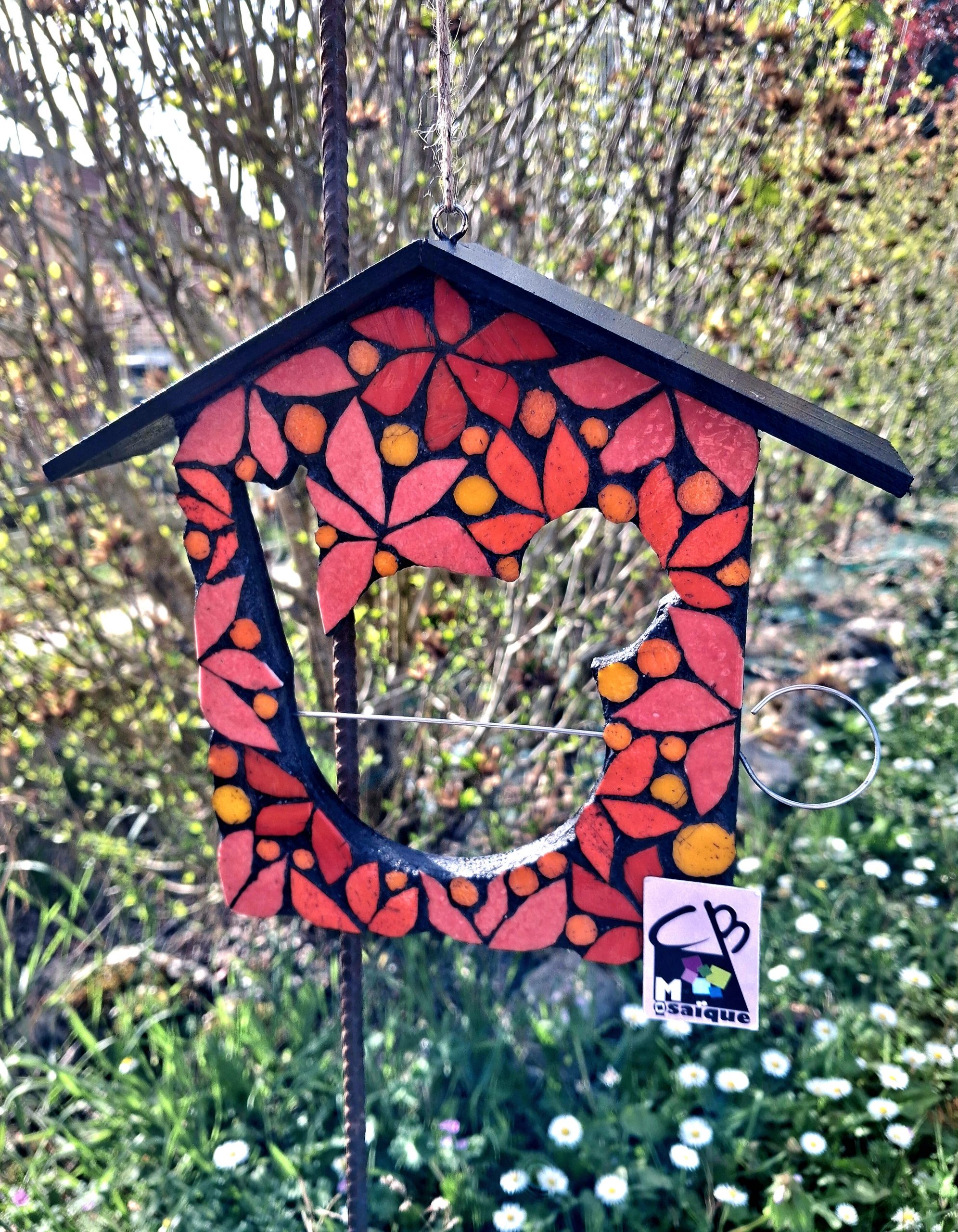 Nichoir Boule de graisse Oiseaux végétal orange rouge en mosaique