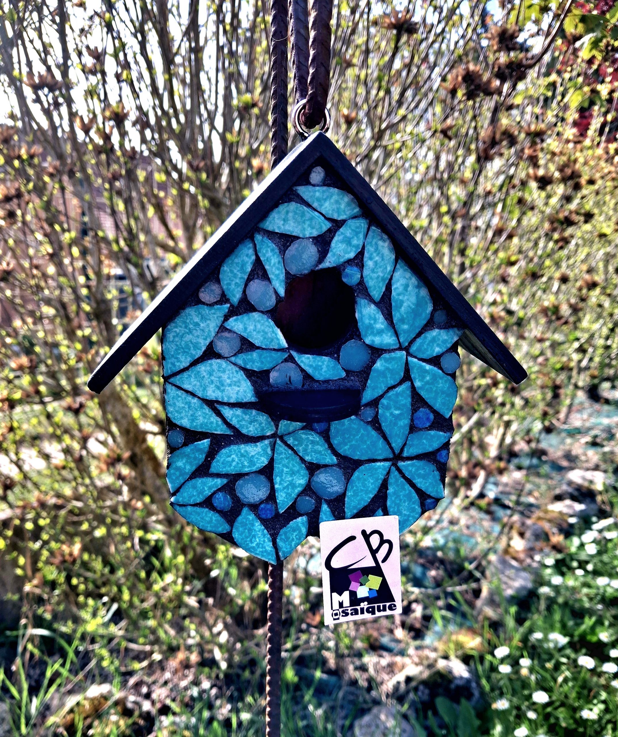 Nichoir oiseaux Végétal turquoise en mosaique